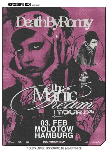 Die in Los Angeles lebende Künstlerin DeathbyRomy, bürgerlich Romy Flores, zählt zu den eindrucksvollsten Stimmen der modernen Alt-Pop-Szene. Ihre Musik verbindet dunkle Romantik mit industrieller ... Mehr Infos